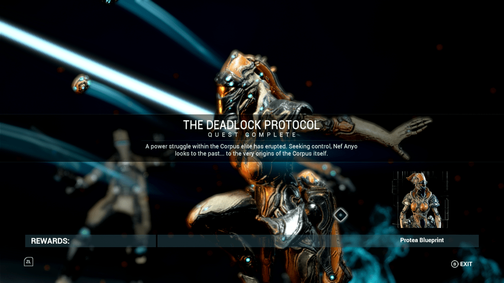 Not a whole lot of stuff done today because I kept on getting side tracked that I need to do something else before I can advance for something that I need to get done. I did manage to get a Quest done, not a main quest though but at least I got a quest done. Sometime during the quest, I had to get my operator an AMP to level it up to Max so I can upgrade it, but before I can upgrade it, I had to get the upgrade person (I don’t know his name) standings to Level 3, which I haven’t started on.